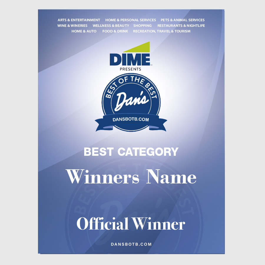 Proudly display your win with the official Dan’s Best of the Best winners plaque.